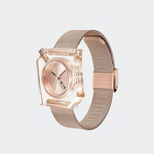 KLASSE14で人気の新シリーズ『K14』に、ひと回り小さめの34ミリケースが加わります!不規則な6角形と独創的なクリアケースデザインはそのままに、サイズダウンでミニマルなかわいらしい印象をプラス。40ミリケースと同色展開でペアウオッチとしてもおすすめ!17mm幅のストラップとの交換も可能なので様々な組み合わせが楽しめます!