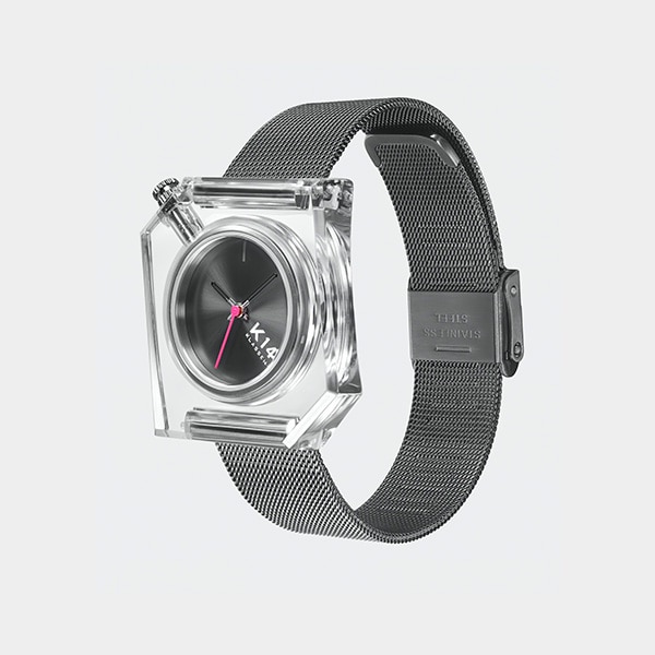KLASSE14で人気の新シリーズ『K14』に、ひと回り小さめの34ミリケースが加わります!不規則な6角形と独創的なクリアケースデザインはそのままに、サイズダウンでミニマルなかわいらしい印象をプラス。40ミリケースと同色展開でペアウオッチとしてもおすすめ!17mm幅のストラップとの交換も可能なので様々な組み合わせが楽しめます!