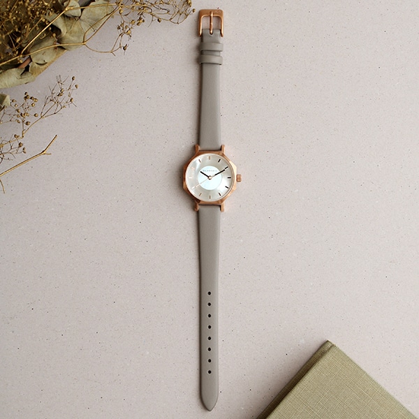 TiCTAC系列店でしか購入できない別注モデル。2021年ウインターシーズンの新作は8角形のケースが特徴的Volare OKTOから2品番が登場。ローズゴールドケース×ホワイトMOP文字盤はライトグレーのレザーストラップとの組み合わせでトレンドを取り入れたモデル(WOK21RG013S)。シャンパンゴールドケース×マットグレーカラー文字盤(WOK21CE003S)は、落ち着いた上品な印象に仕上がっています。28mmケースは程よいサイズ感でこれからのニットコーデなどとも相性ピッタリ。
