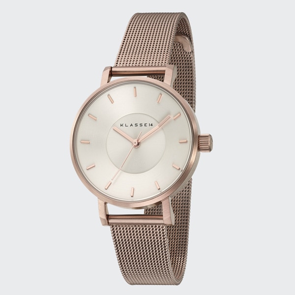 KLASSE14の人気コレクション<Volare>よりNew Modelが発売!ニューモデルはVolareのすり鉢状の文字盤デザインを保ちながら、従来のケースサイズを一回り小さくスリムな仕上がり。コンパクトなフォルムはこれまでのVolareにキュートな一面をプラスします。カラーは定番のローズゴールド/ヴィンテージゴールドに加えて新たにシャンパンゴールド、清潔感を感じさせるシルバーケース×ホワイト文字盤も加わりました。
