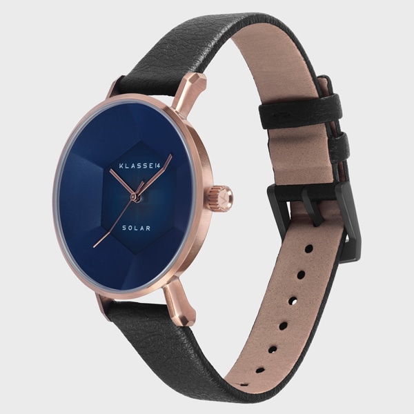 KLASSE14よりブランド初となる太陽光電池を使用したソーラー時計『Volare Solar』.。ケースはリサイクルしたステンレススチールにソーラームーブメントを搭載。ストラップにはリンゴの皮を再利用したアップルピールレザーを採用しています。商品のパッケージBOXは100%再生紙を使用したサステナブルで環境に優しいモデルとなっています。文字盤の中心部は太陽の光をイメージした六角形に、従来のVolareよりスリム見えする最新デザインのケースは、39mm&34mmの2サイズの展開しています。カラーのバリエーションは、『Horizon Champagne』、『Deep blue Vintage』、『Darkness Rose Gold』の3種類。環境に優しいVolare Solar、是非お試しください!