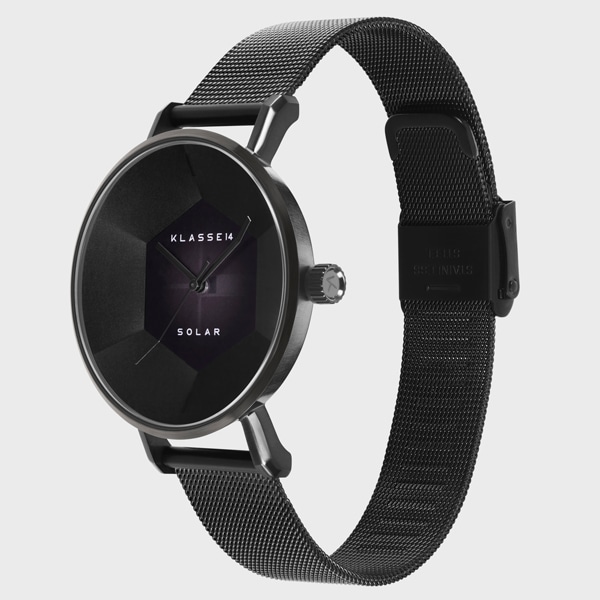 KLASSE14よりブランド初となる太陽光電池を使用したソーラー時計『Volare Solar』.。ケースはリサイクルしたステンレススチールにソーラームーブメントを搭載。ストラップにはリンゴの皮を再利用したアップルピールレザーを採用しています。商品のパッケージBOXは100%再生紙を使用したサステナブルで環境に優しいモデルとなっています。文字盤の中心部は太陽の光をイメージした六角形に、従来のVolareよりスリム見えする最新デザインのケースは、39mm&34mmの2サイズの展開しています。カラーのバリエーションは、『Horizon Champagne』、『Deep blue Vintage』、『Darkness Rose Gold』の3種類。環境に優しいVolare Solar、是非お試しください!