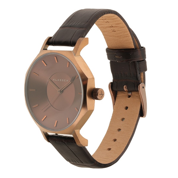8角形ケースが目を引くVolare OKTO モデルより秋冬らしいブラウンフェイスに型押ししたレザーストラップを 組み合わせたNew Colorが登場!文字盤にマッチした型押しレザーは、上品な中にも渋みを兼ね備えたシックな仕上がりに。