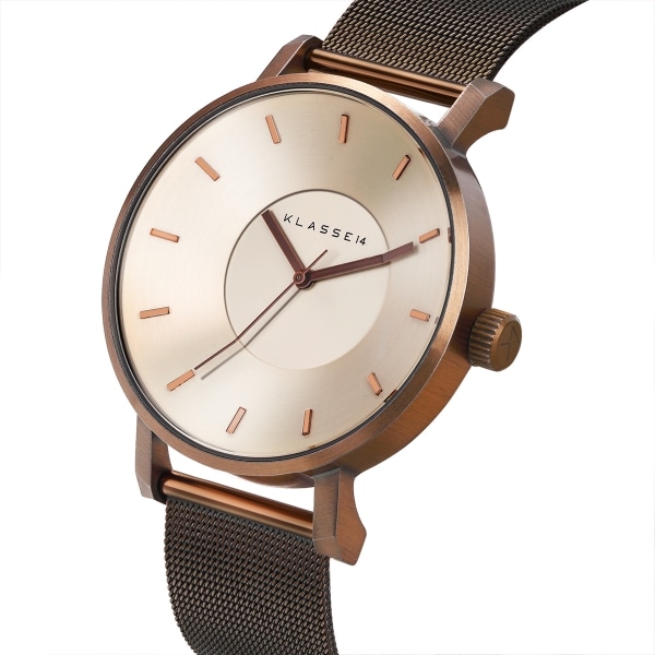 「パリの狭い路地を散策して、この街の建築物の美しさに浸り、パン屋さんや挽きたてのコーヒーの香りについ魅了されてしまうでしょう」ロマンティックな街の休日を散歩している、その時に身に付けるイメージで作られたVolare Vintage goldです。 KLASSE14定番の形ながら、それでいて今までと異なった雰囲気を装う事のできる仕上がりです。