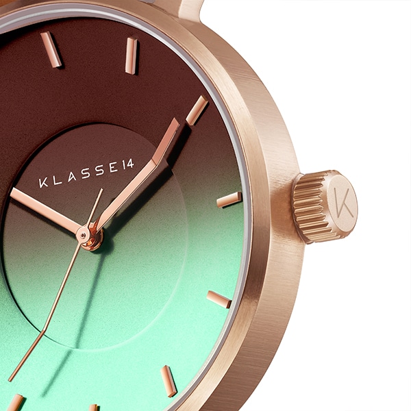 KLASSE14から、上下で異なるカラーのベルトとダイヤルのグラデーションが特徴的な「VOLARE MARSHMALLOW」シリーズが登場。人気のローズゴールドケースに、ダイヤルにはグラデーションカラーを施しました。それぞれのカラーはチョコミント・ストロベリー・タンジェリンをイメージ。鮮やかな色味と、スイーツのようなカラーの組み合わせがキュートなシリーズです。