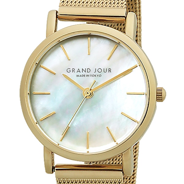 光の反射が美しい天然の白蝶貝ダイヤルが特徴のエレガントモデル。