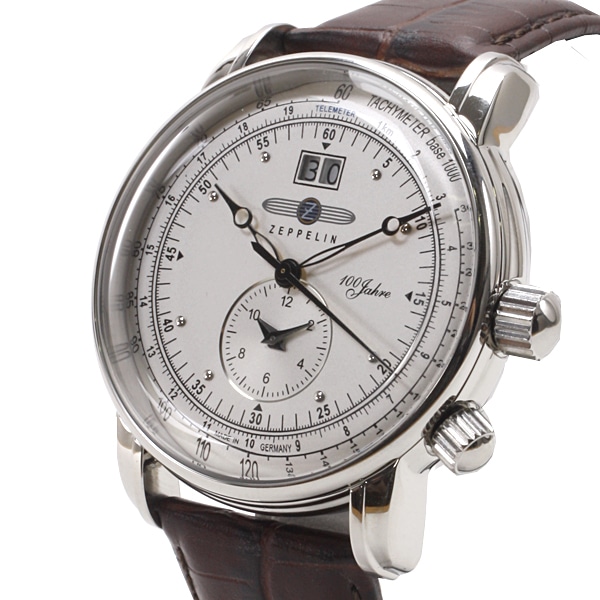 1900年に誕生した、ZEPPELIN飛行船の第一号「LZ1」の100周年を記念したシリーズ。「LZ1」の機体をデザインソースにした丸みを帯びたダイヤルやドーム型のガラスが特徴です。ダイヤルにはドイツ語で「100周年」を意味する「100 Jahre」の文字が入っています。『100周年記念シリーズ デュアルタイムビッグデイト』は6時位置のサブダイヤルで第二時刻を表示。グローバルなシチュエーションに適した逸品です。