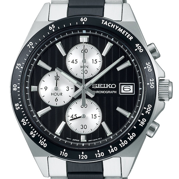 セイコーセレクション“Sシリーズ”より、金属ダイヤルの質感を活かした、ファッション性に優れた縦三つ目のクロノグラフが登場。スタイリッシュなファッション性を取り入れつつも、流行に左右されない、スタンダードなデザインのクロノグラフウオッチです。