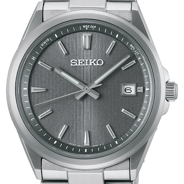 軽快な装いのフォルムが特徴的な、ワンランク上のソーラー電波モデルが登場。細縁のすっきりとしたベゼルと、エッジを組み合わせたソリッドな形状のケースデザイン、中留を無垢にしたメタルブレスレットが、ワンランク上を感じさせます。異なる形状のインデックス、「SEIKO」、カレンダー枠を立体パーツにすることで、堂々としたデザインとなっております。ケース、メタルブレスレットにはダイヤシールドを施すことで、日常使いの擦り傷、小傷から時計本来の美しい輝きや、きれいな仕上げを守ります。スーツにも合せやすいシャドーストライプ柄の印刷を組み合わせたダイヤルにすることで、すっきりとした印象を与えます。サファイアガラスには、スーパークリアコーティングを施し、光の反射を抑えることでダイヤルの上質感をより伝えられるようにしております。電子りゅうず搭載で、時差修正がより簡単になることに加え、世界5エリア(日・中・米・独・英)の標準電波を受信します。