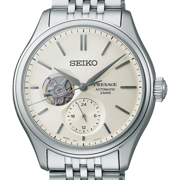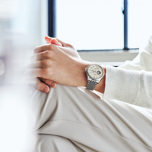 立体的なダイヤルが、クラシックな雰囲気を演出。日本の伝統的素材である絹に着目し、生糸の質感をイメージした模様を採用。立体成型ダイヤルの曲面に型打ち模様を組み合わせることで、独自の深い味わいを実現しております。針やインデックスをダイヤルの曲面に合わせてカーブさせることで、ダイヤル全体が柔らかな光で輝いて見えます。ケースは柔らかな曲面で構成された、思わず指先で触れたくなるような親しみやすさを感じられる造形に。バンドには70年代のメタルバンドをイメージしたレトロ感のある繊細な多列バンドを採用。量感と高級感を備え、着用性にも配慮したデザインとなっております。