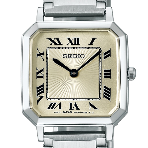 人気セレクトショップ「ナノ・ユニバース」とコラボレーションをした、ヴィンテージスタイルの電池式クオーツ第3段が登場。デザインテーマ:My Favorite Vintage時代を超えて愛されるヴィンテージスタイルの時計を目指して、人気セレクトシップ「ナノ・ユニバース」とコラボレーションをしたモデルです。ケース形状・メタルバンド・レザーストラップ色・ダイヤルカラーを「ナノ・ユニバース」でセレクト。1970年代後半のアーカイブから着想した八角形のケースが、懐かしさを高級感を感じさせるモデルとなっております。ダイヤル中央には放射状の型打ちを施し、立体感のある仕上がりを目指しました。太めのオールローマ数字のインデックスも、1970年代後半のアーカイブから着想したもので、八角形のケースに合わせて見やすいレイアウトになるようこだわりました。針はバット針にすることで、スマートな印象に仕上げています。ナノユニバースコラボレーション初の採用となるメタルブレスレットは、存在感のあるつややかな3列タイプを採用。質感の良い無垢のブレスレットで、ジュエリーとのコーディネートを楽しめる2色展開です。レザーバンドは、質感・型押しの柄・色味にこだわって、上質な雰囲気で身につけられる1本になるようセレクトしております。