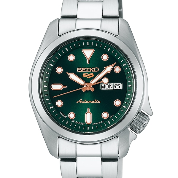 国内未発表モデルとなるSKXシリーズ(28㎜)が登場。スポーティなダイヤルレイアウトが魅力的なスモールサイズが特徴。4R36と同じスペックを持った2R06を搭載し、ケース径28㎜にダウンサイジング。海外市場で定番となる人気のカラーリングを採用し、ゴールドのアクセントカラーがポイント。メタルブレスレットの中駒を鏡面に仕上げ、スポーティながらも華やかな印象を演出。