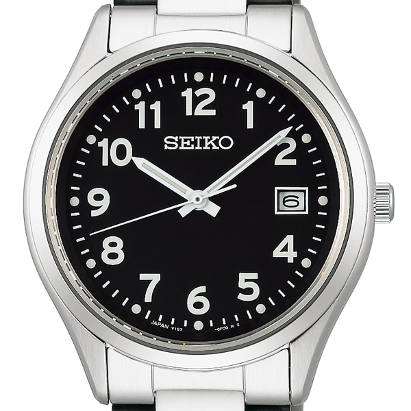 人気のセイコーセレクション ソーラーモデルに、視認性抜群のアラビア数字を採用したモデルが登場。シーンを選ばず使いやすい、Made in Japanの日付付きソーラーウオッチとなっており、10気圧防水、耐磁時計(JIS1種)で、日常使いにも最適です。胴横からかん先へとつながる繊細な斜面を持つ、流線形の美しいフォルムのケースデザインを採用するほか、ガラスはサファイアガラスを採用し、質感の高い1本となっております。アラビア書体は、高速道路の看板文字をモチーフにした「interstate」フォントを採用し、立体感のある肉盛り印刷でくっきりと視認性高く表現。時針はアラビア数字、分針は分目盛りまでしっかり届く長さに設定し、時刻の読み取りやすさにこだわりました。他、情報をすべてダイヤル上にまとめることで、斜めからの視認性の向上を狙いました。メタルブレスレットはらくらくアジャスト方式で、ご自身でバンド調整も可能なので、プレゼントにもお勧めです。