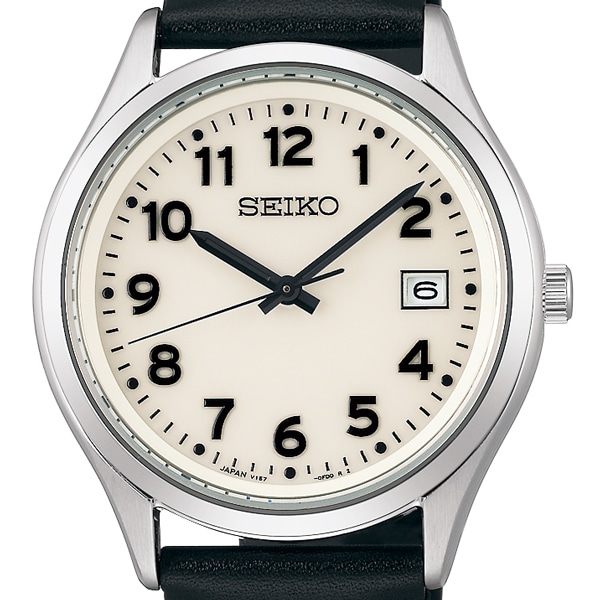 人気のセイコーセレクション ソーラーモデルに、視認性抜群のアラビア数字を採用したモデルが登場。シーンを選ばず使いやすい、Made in Japanの日付付きソーラーウオッチとなっており、10気圧防水、耐磁時計(JIS1種)で、日常使いにも最適です。胴横からかん先へとつながる繊細な斜面を持つ、流線形の美しいフォルムのケースデザインを採用するほか、ガラスはサファイアガラスを採用し、質感の高い1本となっております。アラビア書体は、高速道路の看板文字をモチーフにした「interstate」フォントを採用し、立体感のある肉盛り印刷でくっきりと視認性高く表現。時針はアラビア数字、分針は分目盛りまでしっかり届く長さに設定し、時刻の読み取りやすさにこだわりました。他、情報をすべてダイヤル上にまとめることで、斜めからの視認性の向上を狙いました。SEIKO SELECTIONとして今までなかった、暗闇でも時刻を読み取れる全面ルミブライトダイヤルをラインアップ。レザーバンドは着脱が簡単なワンプッシ三つ折れ方式を採用しております。