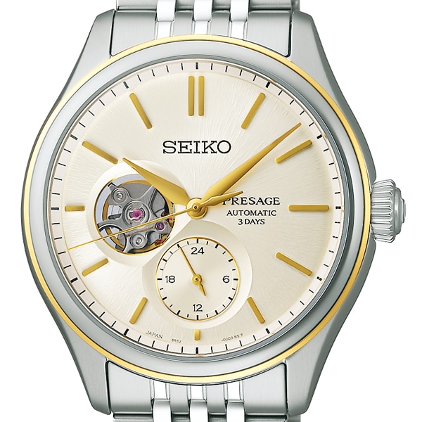 針やインデックスをダイヤルの曲面に合わせてカーブさせることで、ダイヤル全体が柔らかな光で輝きます。型打ちには日本の伝統的素材である絹に着目した新しい模様を開発。3カレは絹織物の生地を、オープンハートは生糸の質感をイメージしております。また、立体成型ダイヤルの曲面に型打ち模様を組み合わせることで、独自の深い味わいを実現。ケースは柔らかな曲面で構成された、思わず指先で触れたくなるような親しみやすさを感じられる造形となっております。バンドは70年代のメタルバンドをイメージしたレトロ感のある繊細な多列バンドを採用。量感と高級感を備え、着用性にも配慮したデザインとなっております。
