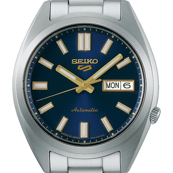 人気のSNXSシリーズより、ゴールドのキーカラーが特徴のモデルが登場。トラッドファッションにおいて多様されるアイテム(ブレザーの金ボタン等)とコーディネートしやすいカラーリング。針・インデックスの金色の差し色は深みのあるダイアル色に映え、上品な印象を与える。