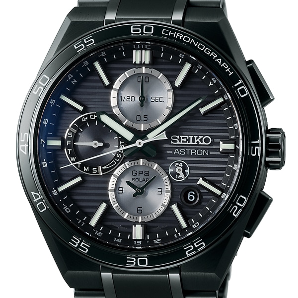 また、腕なじみの良い低重心のチタンケースに高級感のあるデュアルカーブサファイアガラスを採用。鏡面仕上げと筋目仕上げのパーツを組み合わせた、質感の高い5列ブレスレットが腕元でエレガントな雰囲気を醸成。裏ぶたには、ASTRONブランドを象徴するグローブマークを立体的にレイアウトしたハイエンドモデルならではの特別仕様です。