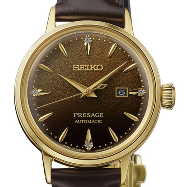 カクテルを思わせる艷やかなカラーダイヤルが特徴のCocktail Timeシリーズから、秋冬らしいホットカクテルをイメージした30㎜のモデルが登場。30㎜の小径サイズで、秋冬の季節に合う、温かさを感じるホットカクテルをイメージした型打ちとダイヤルの色見を表現。ダイヤルはCocktail Timeのアイコンである楔形略字はそのままにダイヤモンドをセッティングできる一体型略字を採用。12時、3時、6時、9時の4か所にダイヤモンドを設置し華やかさを演出。