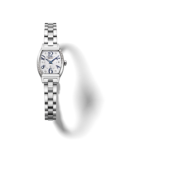 ロングセラーデザインが、愛らしいミニサイズになって新登場。白蝶貝ダイヤルに、深みのある艶やかなブルーのインデックスと時分針を用いました。白蝶貝の繊細な輝きと、ケースにあしらったダイヤモンドの美しい煌めきの中で、差し色のブルーが気品あるアクセントとして際立つ一本です。