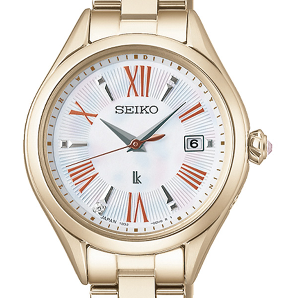 人気のデザインはそのままに、LUKIA Growらしさを加えたリニューアルモデルが登場。上質な白蝶貝のダイヤルに、金木犀をイメージしたオレンジ色のインデックスを組み合わせました。ケースには、ルキアならではのレディゴールドを用い、華やかさの中に上品さが漂う一本に仕上げました。7時位置には、花のしずくを表現したワンポイントのラボグロウン・ダイヤモンドが柔らかく輝きます。ブレスレット幅を11mmから10mmに変更して、すっきりとしたシルエットに仕上げています。花が開花する様子をイメージしたしなやかなローマインデックスが、「LUKIA Grow」としての統一感をもたらしています。りゅうずは、花が開く様子を表現したガラス入りです。