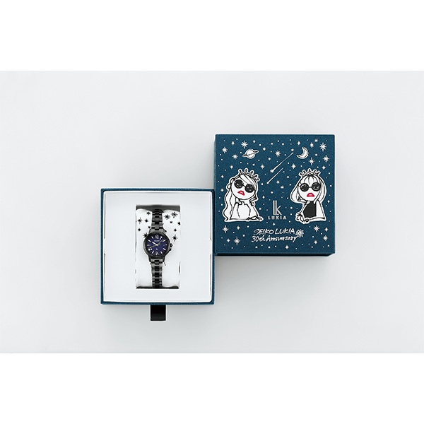 ブランド30周年を締めくくる ルキアとELAIZA IKEDA 、 DAICHI MIURAとのトリプルコラボレーションモデル テーマは「星月夜(ほしづきよ)」― モデルは池田エライザさんとの共同開発、パッケージは人気アーティストの三浦大地さんデザイン― エライザさん憧れの神話の世界を、神秘的な星月夜をイメージしたデザインで表現しました。 パッケージは、「星月夜」のテーマに合わせて三浦大地さんがトータルデザイン。女性に大人気のキャラクター「Josie」を用いて「星月夜」を表現しました。 エライザさんをイメージした「Josie」 も登場するクロスとボックスが、コラボレーションモデルならではの特別感を高めています。
