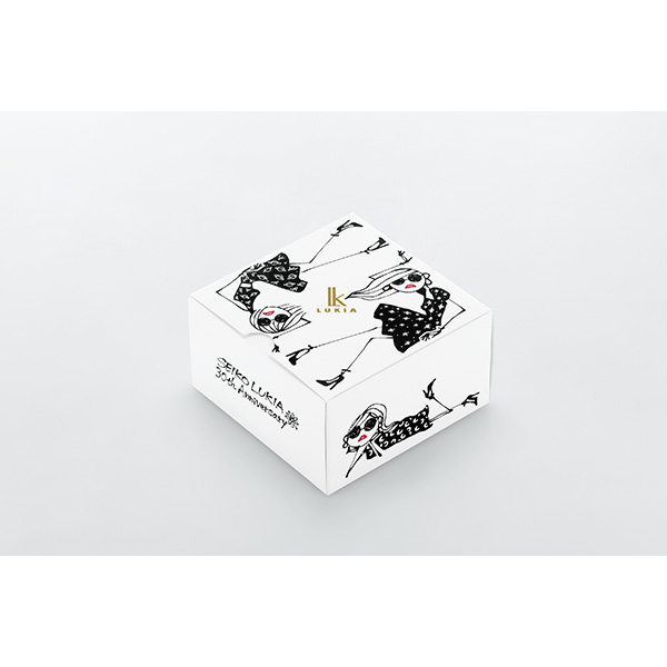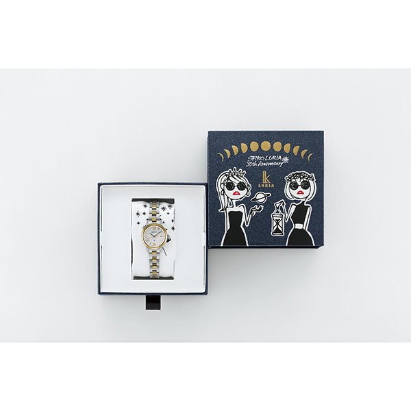 ブランド30周年を締めくくる ルキアとELAIZA IKEDA 、 DAICHI MIURAとのトリプルコラボレーションモデル テーマは「星月夜(ほしづきよ)」― モデルは池田エライザさんとの共同開発、パッケージは人気アーティストの三浦大地さんデザイン― エライザさん憧れの神話の世界を、神秘的な星月夜をイメージしたデザインで表現しました。 パッケージは、「星月夜」のテーマに合わせて三浦大地さんがトータルデザイン。女性に大人気のキャラクター「Josie」を用いて「星月夜」を表現しました。 エライザさんをイメージした「Josie」 も登場するクロスとボックスが、コラボレーションモデルならではの特別感を高めています。