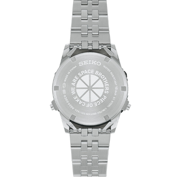 漫画「宇宙兄弟」との初のコラボレーションモデルが登場。原作者の小山先生自らの監修のもと、40巻に収録された、ファン待望の名シーンをイメージするモデルに仕上げました。ムッタの宇宙服をイメージしたシルバーのケースに、ベゼルには、八角形を強調する黒めっきを施しました。ベゼルは「WE ARE SPACE BROTHERS PIECE OF CAKE」のマークとリンクし、8つの機能に分割された特別仕様です。12時位置には、「PIECE OF CAKE」のコンセプトにリンクし、【1ピース】を示すマークを配置しました。宇宙空間での着用を想起させるナイロンセットバンドがついた特別仕様です。裏蓋には「WE ARE SPACE BROTHERS PIECE OF CAKE」のシンボルマークを刻みました。