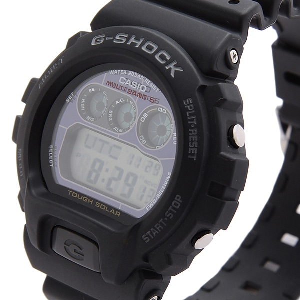 様々なコラボレーションモデルに採用され、ストリートファッションなどで人気のDW-6900が、世界6局の標準電波を受信するマルチバンド6を搭載。デザイン・ケース径はそのままに、電波ソーラー化を実現しました。蛍光灯のわずかな光で駆動し、日本(2局)、中国、アメリカ、イギリス、ドイツの6局の標準電波を受信します。また、液晶を従来モデルより大きくし、視認性を向上させました。シンプルなカラーリングで、ベーシックなデザインに仕上げています。