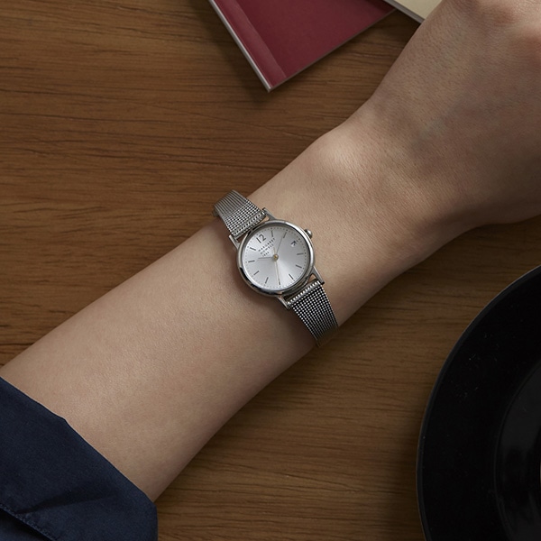 メッシュモデルに、デイト機能が付いたモデルです。ビジネスなどで使いやすいデイトは多くの働く女性が求めていた機能です。全体的にすっきりとしたデザインで、マーガレット・ハウエル アイデアらしさを感じるモデルです。