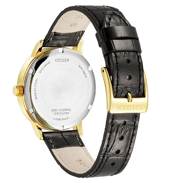 シンプルさにこだわりながら、使いやすいサイズ感を追求したベーシックなデザイン。丁寧に仕上げられたケースは、シチズンならではのコストパフォーマンスの高い仕様。シンプルなホワイトの文字板に、大きめのアラビア数字インデックスをレイアウトし、視認性を確保しています。