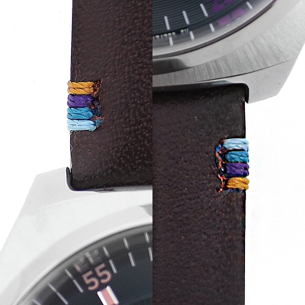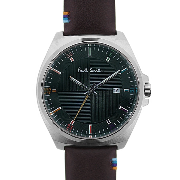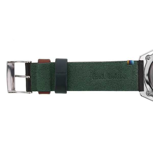 定番「クローズド アイズ」に、シックなグリーンの文字板を採用した新色が登場。インデックスにマルチカラーを採用。上品なブラウンカラーのストラップには、アーティストストライプのカラーステッチをプラス。さりげないアクセントが、ポール・スミスらしさを演出しています。