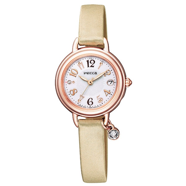 揺れるたびに輝くチャームが人気のブレスラインから、替えバンド付きの2Wayモデルが登場。オンオフを選ばずおしゃれ感のあるサテン素材のバンドは、ベージュとマルベリーカラーの2種類をラインナップしています。視認性の良いアラビア数字のインデックスは、はじけるように華やかなデザインが印象的。9時の位置にはワンポイントのお花、中央には小さなお花の飾り線をうっすらとしのばせています。揺れるたびキラキラ輝くクリスタルのチャームは取り外しが可能なので、替えバンドとの組み合わせで4通りの表情が楽しめます。