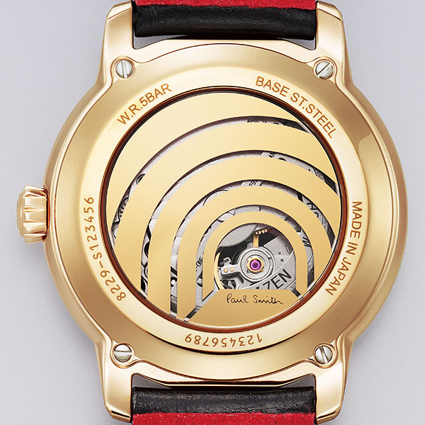 ロンドンの主要ターミナル駅であるキングス・クロス駅は、コンコースに架けられた半円アーチの巨大な屋根がとても美しい歴史的建造物です。そこから着想を得た本モデルは、メカニカルムーブメントを採用、裏ぶたはシースルーバック仕様で、アーチ状のコンコースを模したメタリックプリントを施し、テンプが動く様子をアーチからのぞき込むように見ることができます。ストラップには英国製ブライドルレザーを採用し、アーティストストライプのカラーステッチがアクセントになっています。