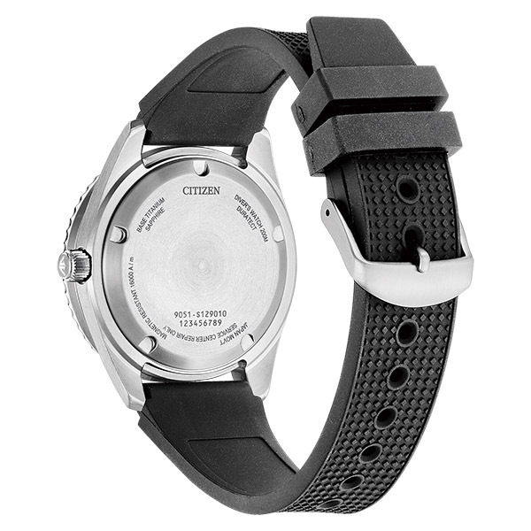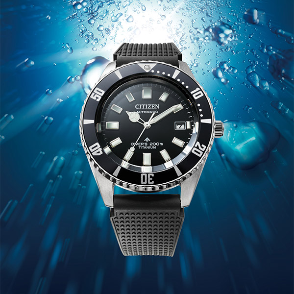 機能性、耐久性、安全性を兼ね備えた本格スポーツウオッチ、シチズン PROMASTER(プロマスター)。1977年発売の「チャレンジダイバー」のデザインを継承し、現代的にアップデートした強化耐磁仕様ムーブメント搭載のメカニカルダイバーズウオッチ。。過去のレガシーを生かしながら、スペックや素材をアップデートしたモデルになります。サイドビューから垣間見える甲丸なデザイン、すり鉢状のベゼル、かつてのケース幅やミラーとヘアラインの仕上げを踏襲したデザインが懐かしさを感じさせます。ひげぜんまいと周辺のパーツに磁気を帯びにくい素材を使うことで16000A/mの優れた耐磁性を持つcal.9051を搭載。メカニカルウオッチでありながらも厚さをおさえ、装着感を高めています。・本格ダイバーズウオッチの基準を満たしながらも普段使いもできるウレタンバンドとメタルバンドの2仕様。NB6021-17Eのウレタンバンドは、小さな格子柄のレトロなデザインを施してます。