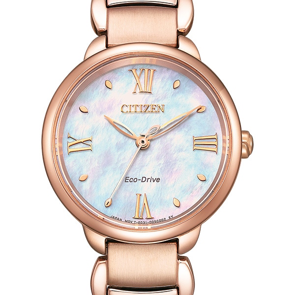 地球のように美しいサステナブルウオッチ、 CITIZEN L(シチズン エル)。咲き誇るダリアの花にインスパイアされた優雅なシルエット、上品で華やかなデザインが魅力のモデルが登場。優しさ、明るさ、華やかさで見る人の心を惹きつけるダリアの花のように、シンプルでありながらも流れるように優雅なシルエットが美しい存在感を放ちます。文字板は、淡く色づいた白蝶貝を採用。インデックスは、伸びやかに広がるローマ字フォントを採用し、花びらの開花を想起させます。こちらのモデルはピンクやオレンジ色のダリアの花言葉「優雅さ」に合わせたイメージを演出しています。