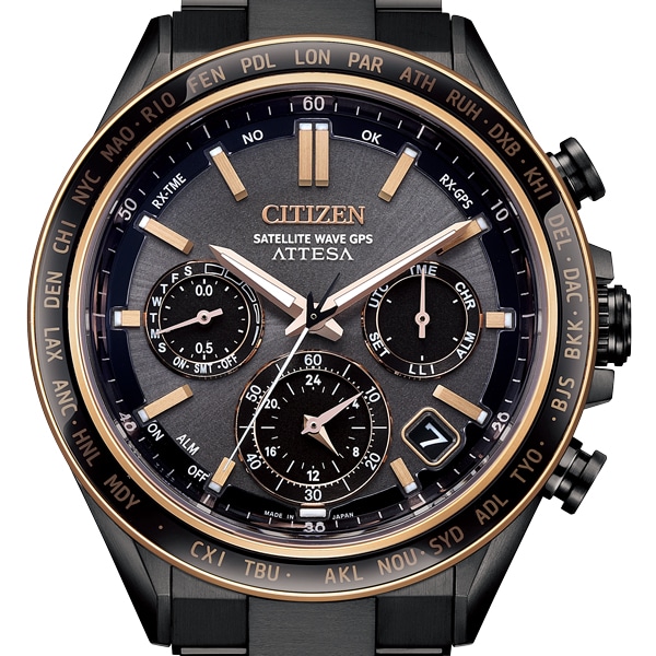 【備考】月差±5秒(非受信時)|デイ&デイト表示|1/20秒クロノグラフ(24時間計)|アラーム|パーペチュアルカレンダー|衛星電波受信機能|位置情報取得機能|ワールドタイム機能(39時差)|サマータイム機能|デュアルタイム機能|ホーム/ローカルタイム切替機能|衝撃検知機能|針自動補正機能|ライトレベル インディケーター|充電量表示機能|充電警告機能|過充電防止機能|過放電検出機能|充電禁止温度検出機能|パワーセーブ機能|フル充電時約5年可動(パワーセーブ作動時)