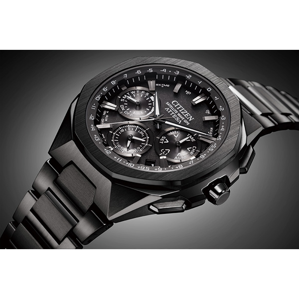 チタニウムで次世代を進み続ける、シチズン ATTESA(アテッサ)。八角形のベゼルはアテッサ初のセラミックス素材。更に、フルフローのケースに異形のプッシュボタンと、新しいスタイリングを採用。ソリッドで精悍な存在感を放つ、GPS衛星電波時計が登場。