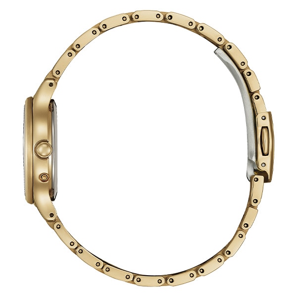 従来のデュラテクトゴールドよりもキズつきにくく、美しさが続く新色デュラテクトアンバーイエローを纏ったモデルは、艶やかな白蝶貝の文字板に、視認性の良いブラウンのインデックスを組み合わせたクラシカルな仕上がりです。