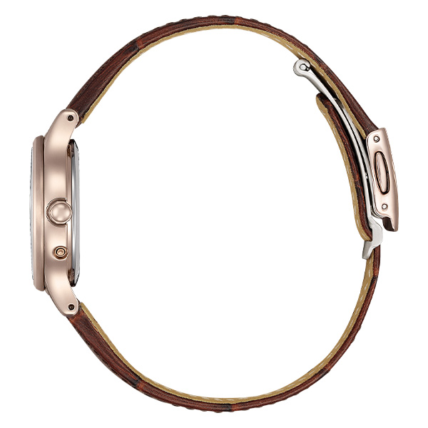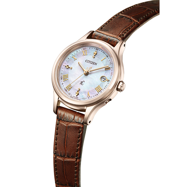 前を向く女性を応援するエンパワーウオッチブランド、シチズン xC(クロスシー)。サクラピンク®のケースと白蝶貝文字板の組み合わせがシンプルでありながらも、華やかな存在感を演出。ブラウンの革バンドが手元を引き締める「hikari collection」の新作です。