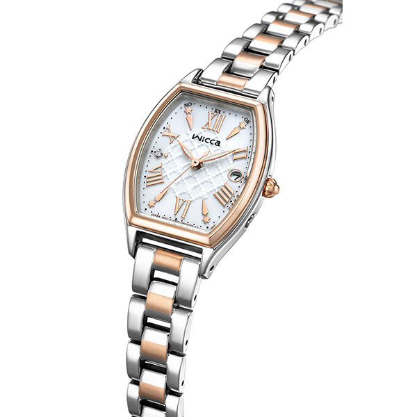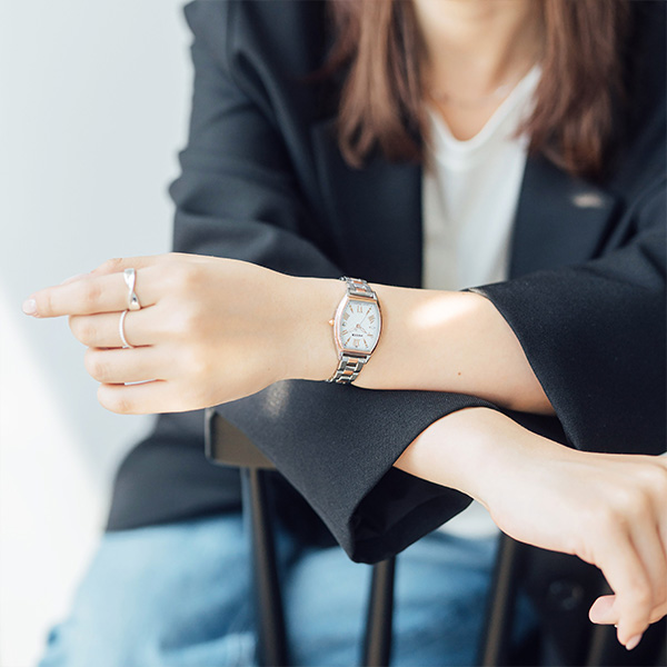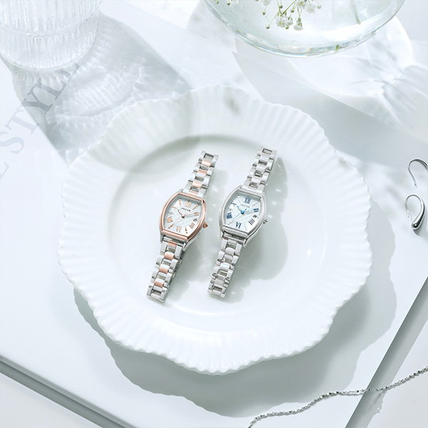 「inner star」をコンセプトにデザインした、ベーシックなトノー型モデル。「自分の中にスターを持つことで自信を持ち、前に進めますように」という想いを込めています。既存のトノー型モデルよりもひとまわり大きなサイズ感で視認性を確保。ケースのやわらかな曲線を生かしつつ、ディテールのエッジをきわだたせて大人っぽい印象に仕上げています。文字板中央に小さな幾何学形状を組み合わせたチェックのパターンを描き、繊細なきらめきを表現。1・5・7・11時の4ヵ所に、中央からはじけるような形状のインデックスを配置して軽やかさを演出しています。