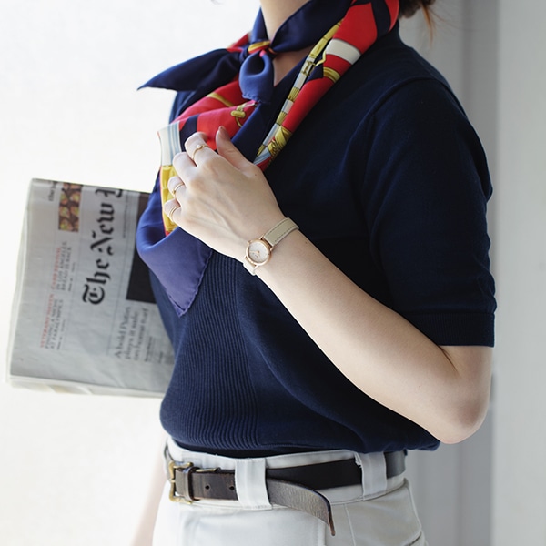 【TiCTAC別注モデル】小ぶりなサイズ感が女性に嬉しいTiCTAC別注モデル。アイボリーレザーバンドにピンクゴールドケースの組み合わせで、女性らしくやわらかなカラーが魅力。電池切れの心配がないソーラームーブメントを採用しています。