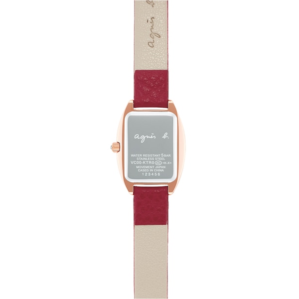 アニエスベーらしさが際立つユニークなトノーモデルが登場しました。アニエスベー本人がこだわったトノーケースに長方形ガラスというアニエスベーらしいエスプリを感じるユニークな形状が特徴です。人気の手書きアラビアを4か所にあしらったダイヤルレイアウトでさらにアニエスらしさを追加しました。りゅうずのクリスタルガラスがアクセントになっています。