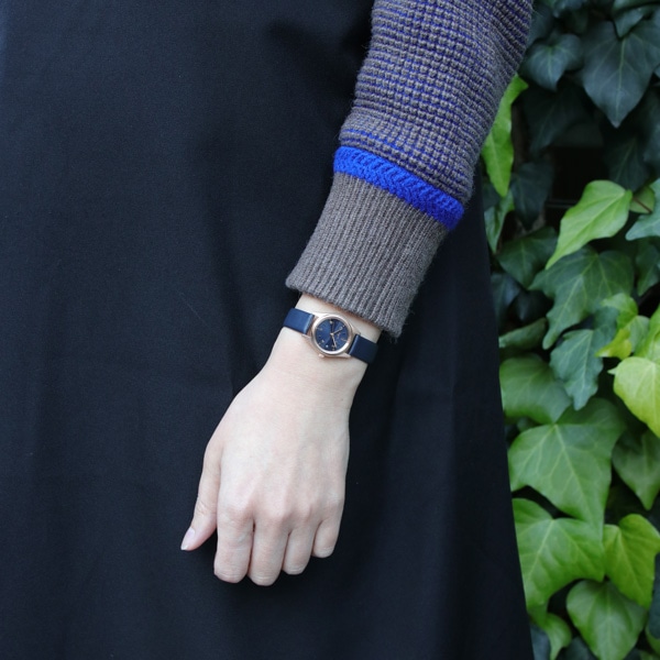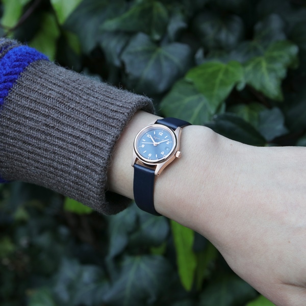 同時期に発売する「シネマデザイン復刻モデル」のエッセンスを取り入れたベーシックなモデルです。ダイヤルにはオリジナルモデルのインデックスを意識したアラビア書体を使用しています。バーインデックスとの組み合わせにより、すっきりした印象に仕上がっています。カーフバンドは三つ折れバックル構造なので、ギフトにもおすすめしやすい商品です。