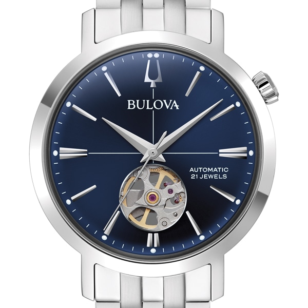 機械式時計の醍醐味でもある時計の心臓部のテンプの動きが表から見られるようにオープンハートをセット。また、美しさを追及しシンメトリーにするために機械を回転させたこだわりのデザイン。38mmのケースサイズはとてもおさまりの良いサイズ感。