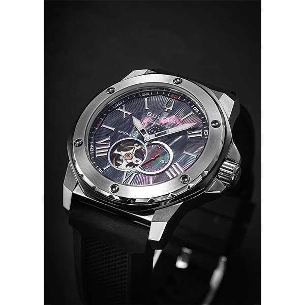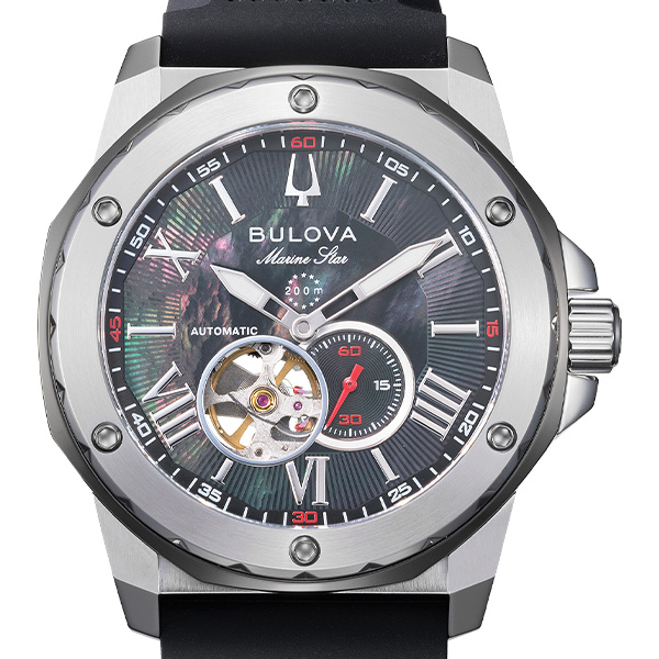 人気のMarine Starから日本限定モデルが登場。 海外ブランドのトレンドを取り入れ、黒染め貝文字板を採用。インデックスは従来のヘアライン仕上げからミラー仕上げに変更し、黒染め貝文字板とのコントラストを強調しています。 また、ベゼル下の台座はガンメタリック色に仕上げ、デザイ ン性を高めました。八角形のマリンスターの特徴を際立たせるとともに、黒染め貝との親和性も向上しています。