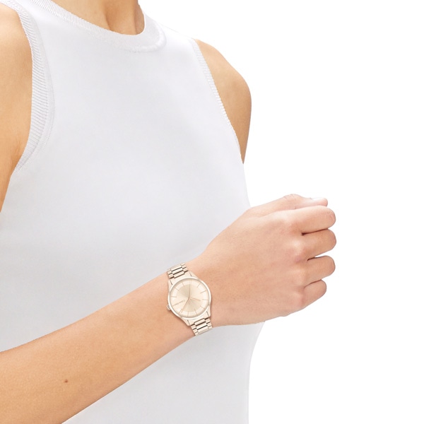 ドレスアップにもカジュアルにも幅広く使用できる3列ブレスのアイコニックシリーズ。文字盤外側に大きくCのデザインが特徴です。