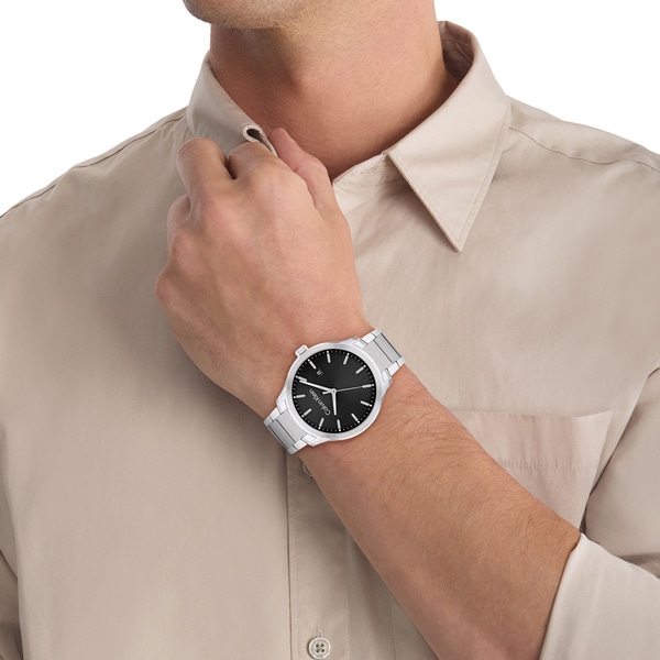 3針に日付の付いた実用性を兼ね備えたシリーズ。43㎜サイズは男性らしいスポーティなデザインです。