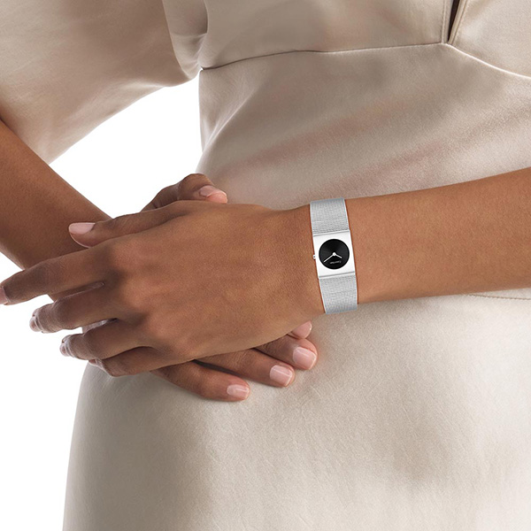 スクエアケースと円形の文字盤の絶妙なバランス 直線的なスクエアケースの中に、円形の文字盤を配置するという、ユニークなデザインが魅力。シンプルながらも、見る人の目を惹きつけます。