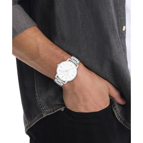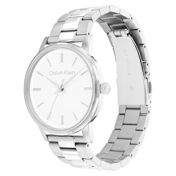 立体感のある文字盤。 文字盤の中央には、繊細なメッシュパターンが施されており、光の反射で表情を変える立体的なデザインが魅力です。シンプルながらも細部へのこだわりが感じられます。