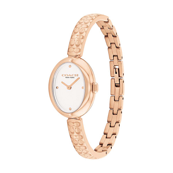 COACH伝統のエッセンスを取り入れたサミーシリーズ。丸みを帯びた特徴的なデザインは、COACHのバッグのアイコンであるターンロックのシルエットをエレガントに再現。まるでジュエリーのようなデザインは、クラシックな要素とコテンポラリーなタッチを融合させたタイムレスな魅力が特徴です。そしてシグネチャー柄を取り入れたバングルデザイン。よりジュエリーのようなエレガントのような佇まいが魅力。